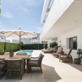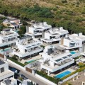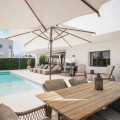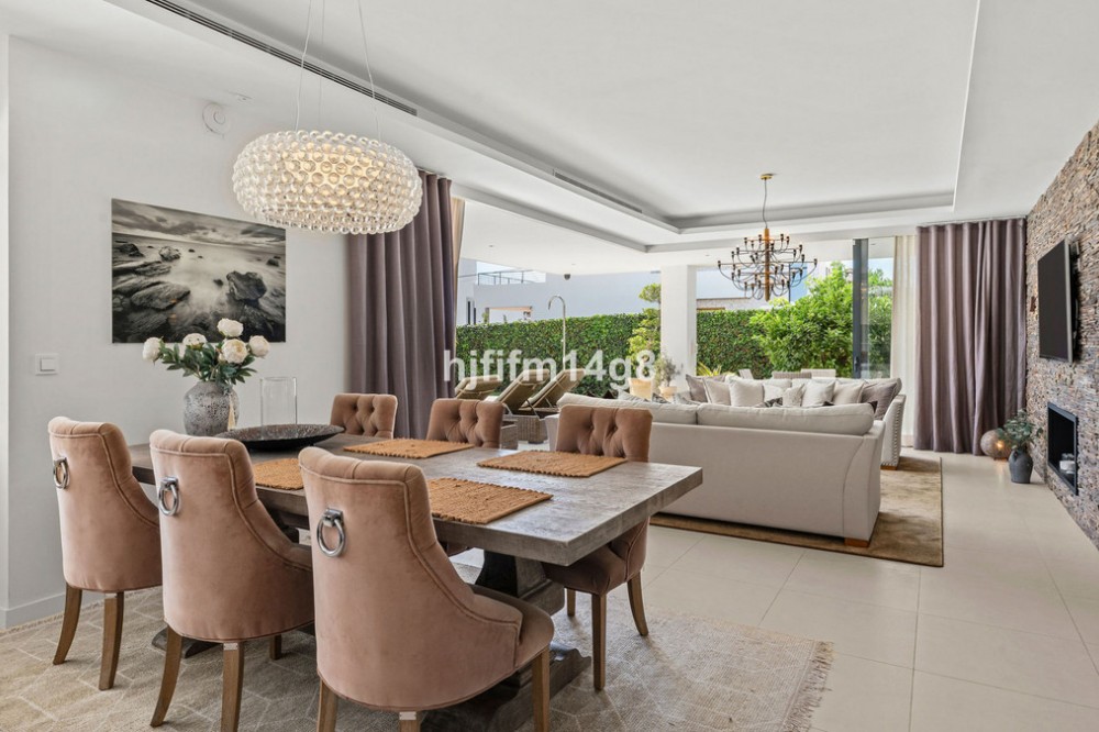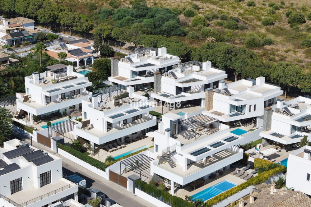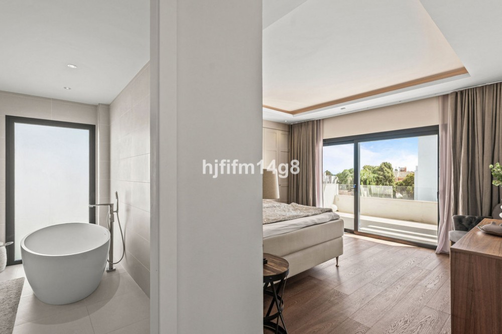 • Deze prachtige villa met vijf slaapkamers te koop ligt op slechts een korte wandeling van het strand en biedt de perfecte mix van luxe, gemak en wonen aan de kust. Gelegen in de gewilde wijk Linda Vista Baja, is deze villa ideaal gelegen in het hart van San Pedro de Alcantara en op slechts 10 minuten rijden van vijf gerenommeerde golfbanen, waardoor het een uitzonderlijke keuze is voor zowel gezinnen als golfliefhebbers. Het voldoet gewoon aan alle eisen - modern wonen, locatie op loopafstand en ook fantastische verhuurmogelijkheden! De villa is ontworpen met een chique moderne stijl en beschikt over hoogwaardige afwerkingen en apparaten, een prachtige privétuin en een verwarmd zwembad. De ruime, lichte interieurs creëren een gastvrije sfeer, met een open keuken die naadloos overgaat in de woon- en eetgedeeltes. Deze ruimtes komen uit op het terras en bieden moeiteloos binnen-buitenleven met uitzicht op de weelderige tuin en het zwembad. De vijf slaapkamers van de villa worden aangevuld met stijlvolle moderne badkamers. Elke slaapkamer heeft een eigen airconditioningunit en de master suite heeft een elegante houten vloer en een eigen badkamer met een luxe bad. Drie slaapkamers bevinden zich op de bovenverdieping, terwijl de benedenverdieping twee extra slaapkamers en een handige wasruimte biedt. Geniet van een panoramisch uitzicht en onvergetelijke zonsondergangen vanaf het fantastische dakterras van de villa, ideaal om te dineren, zonnebaden of gewoon te ontspannen. Deze villa is een waar juweeltje, met alles wat een gezin zich maar kan wensen, met het strand, golf en levendige lokale voorzieningen op slechts enkele minuten afstand. San Pedro de Alcantara ligt op slechts 5 minuten rijden van Puerto Banus en Marbella ligt op slechts 15 minuten afstand, zodat u nooit ver van attracties van wereldklasse bent. Deze villa aan het strand is echt een must-see; uw perfecte kans om een stukje paradijs te bezitten.