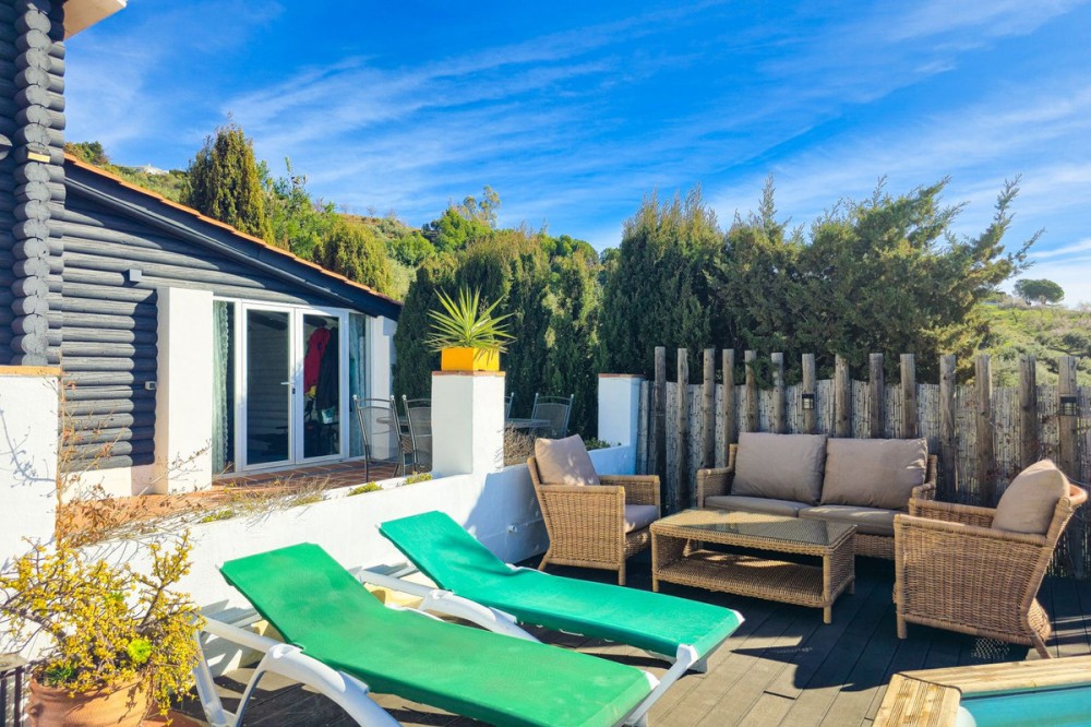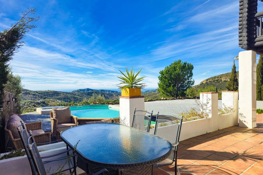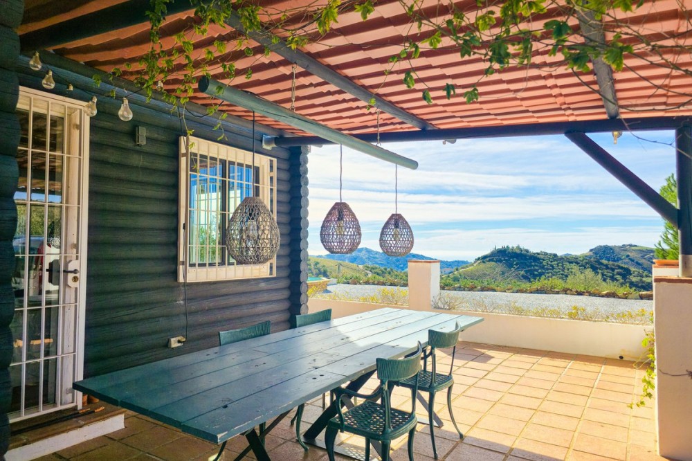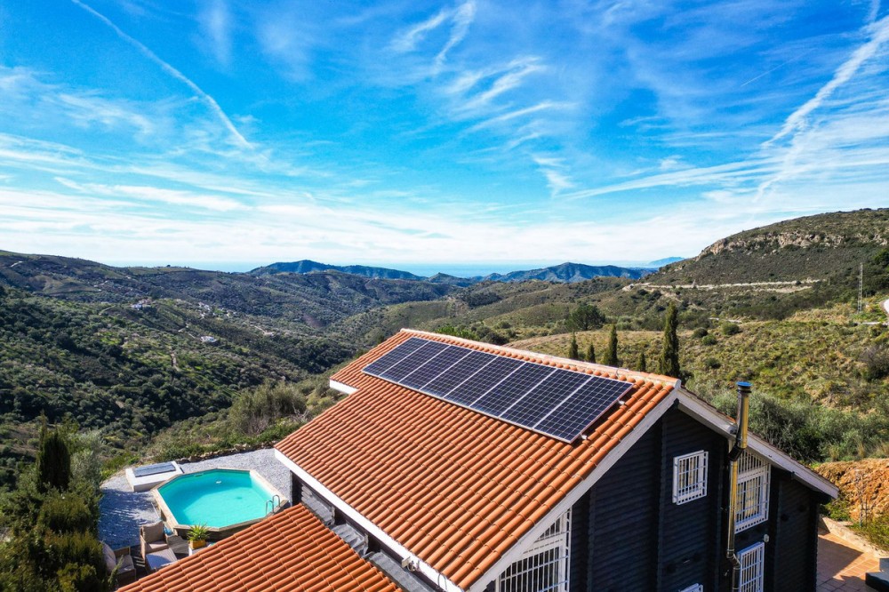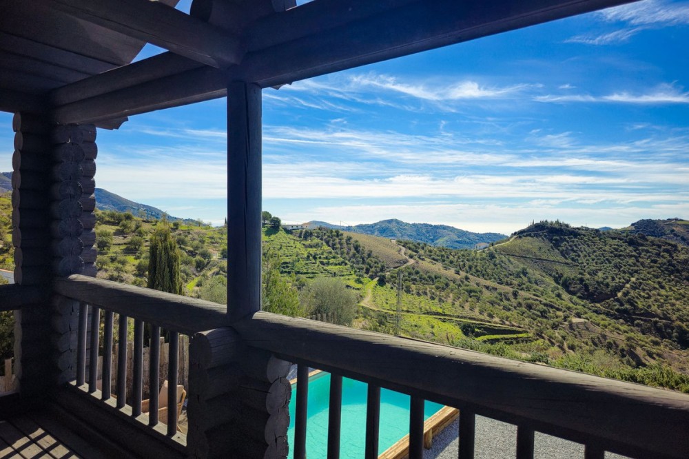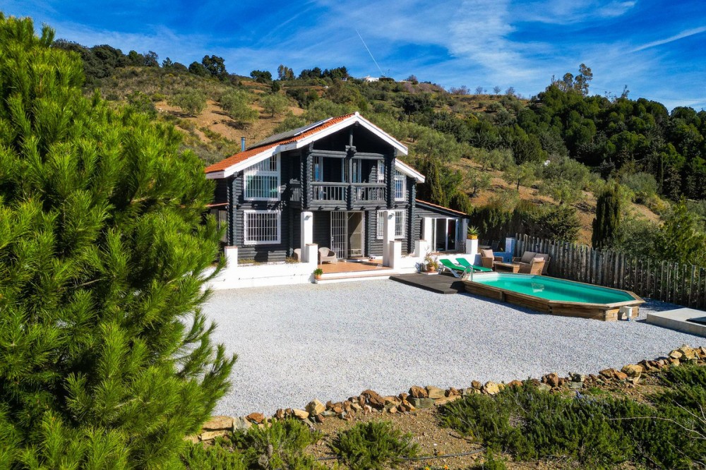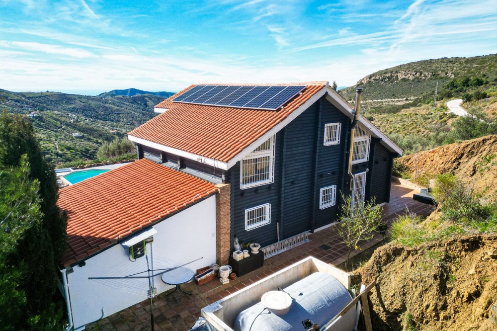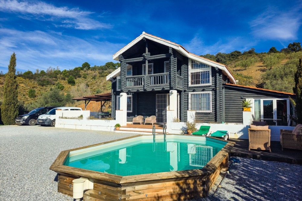 - Your place under the sun in Andalucía. This charming south-facing wooden chalet is set on a generous 2,555 m² plot in a superb and tranquil location, offering beautiful views of the mountains and the sea. It is ideally situated just 5 minutes by car from Canillas de Albaida and Árchez, and only 10 minutes from Cómpeta. The property has excellent access with no rough or dirt tracks. The villa offers 3 bedrooms, including a master bedroom with dressing room, 2 bathrooms, an entrance hall, and a spacious office that could easily be converted into a fourth bedroom. The bright and generous open-plan living and dining area with open kitchen creates a welcoming and comfortable atmosphere. There are also several storage rooms. Outside, you will find multiple terraces, both covered and uncovered, allowing you to enjoy sun or shade throughout the day. The private pool, ample parking space for several cars, and the large plot ensure privacy, space, and tranquility. The property benefits from its own water source, solar panels, internet connection, and will be sold mostly furnished. Sun all day – tranquility – space – privacy. Come and see it for yourself.