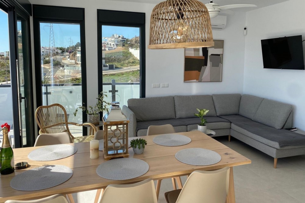 - This elegant modern villa blends clean architectural lines with a warm, comfortable feel, set within a quiet residential area just outside Nerja. From its elevated position, the property enjoys spectacular views of both the sea and surrounding mountains. Offering almost 200 m² of built space over three floors, the villa features three generous bedrooms and three contemporary bathrooms. The interior is light-filled and thoughtfully designed, creating open, inviting spaces ideal for everyday living as well as hosting family and friends. At the top, a spacious rooftop terrace provides the perfect setting to soak up the sun and admire unforgettable Mediterranean sunsets. The main living area is designed with an open-plan concept, seamlessly connecting the lounge, dining space, and fully fitted kitchen. Large doors lead out to expansive terraces, ideal for al fresco dining and relaxation beside the private swimming pool. On the lower level, there is a substantial versatile area currently arranged as a cinema and games room, complete with a full shower room. This space was originally designed to be converted into a self-contained two-bedroom apartment with kitchen and bathroom — plumbing and electrical installations are already in place. In addition, a 20 m² area beneath the front terrace was planned as a gym. Further benefits include two private parking spaces, and the villa is being sold fully furnished. The property also holds a valid tourist licence and generates an annual rental income of approximately €45,000–€50,000, making it an excellent investment opportunity as well as a beautiful home.