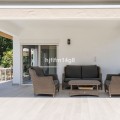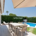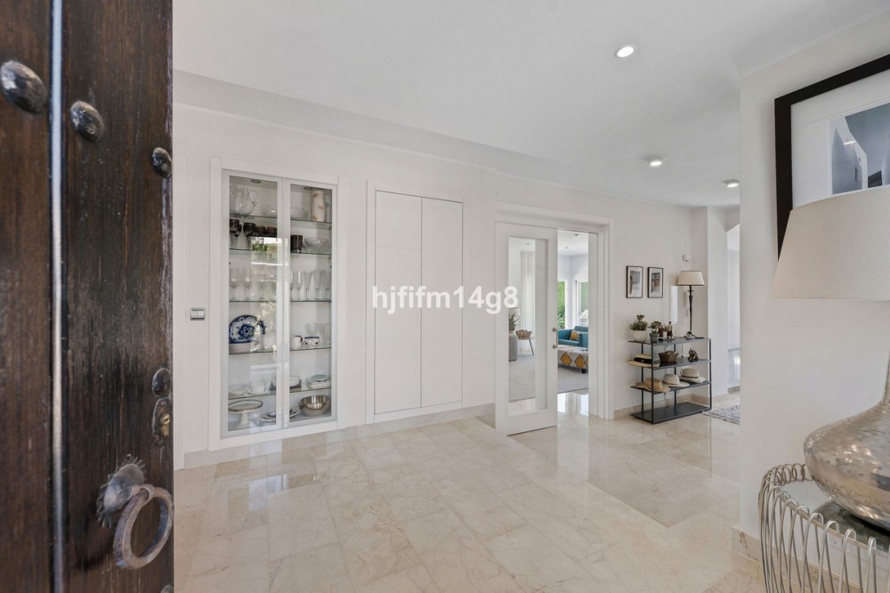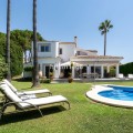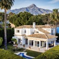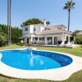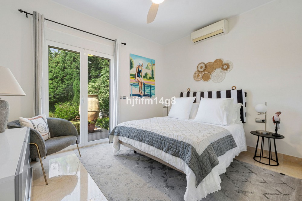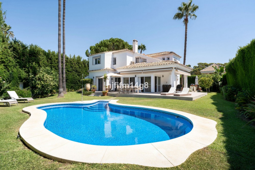 - Deze charmante villa ligt verscholen in een rustige doodlopende straat in de exclusieve, beveiligde urbanisatie Marbella Country Club, een van de meest gewilde woonwijken van Nueva Andalucía. Gelegen op een vlak en privé perceel op het zuiden, biedt de woning een perfecte mix van comfort, elegantie en functionaliteit – ideaal voor zowel het hele jaar door wonen als voor vakantieplezier. De entree leidt naar een lichte en gastvrije hal met toegang tot een gastentoilet, een volledig uitgeruste keuken en een ruime open woon- en eetkamer met directe toegang tot het terras en de tuin. Op deze begane grond vindt u ook een comfortabele tweepersoonsslaapkamer met een eigen en-suite badkamer, ideaal voor gasten of familieleden. Vanuit de hal heeft u ook directe toegang tot het zwembad via mooie dubbele glazen deuren. Een van de meest charmante kenmerken van de villa is een prachtige, lichte kamer grenzend aan de keuken – vol ramen en karakter, compleet met een open haard en directe toegang tot de tuin. Deze veelzijdige ruimte kan dienen als een gezellige leeskamer, tv-lounge, speelkamer voor de kinderen of zelfs een extra slaapkamer. Boven vindt u nog vier tweepersoonsslaapkamers. De hoofdslaapkamer heeft een eigen badkamer, terwijl de overige drie slaapkamers een goed uitgeruste familiebadkamer delen. Eén van de slaapkamers beschikt tevens over een grote inloopkast. De buitenruimte is absoluut een van de hoogtepunten van de woning. Dankzij de ligging op het zuiden geniet de villa de hele dag van de zon en beschikt over een heerlijk privézwembad in de vorm van een boon, omgeven door een ruim en uitnodigend terras – perfect om te zonnen, gasten te ontvangen of buiten te eten. De onderhoudsarme tuin draagt bij aan de rust en privacy van de woning. Een carport en een eigen parkeerplaats maken de woning compleet. Deze villa ligt op korte rijafstand van de levendige jachthaven van Puerto Banús, een selectie van topgolfbanen, internationale scholen en alle essentiële voorzieningen. Het biedt de ideale combinatie van rust en gemak in een van de best onderhouden gemeenschappen van Marbella. Dit is een geweldige kans om een warm en uitnodigend huis met privézwembad te bezitten op een toplocatie aan de Costa del Sol.
