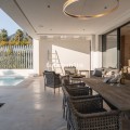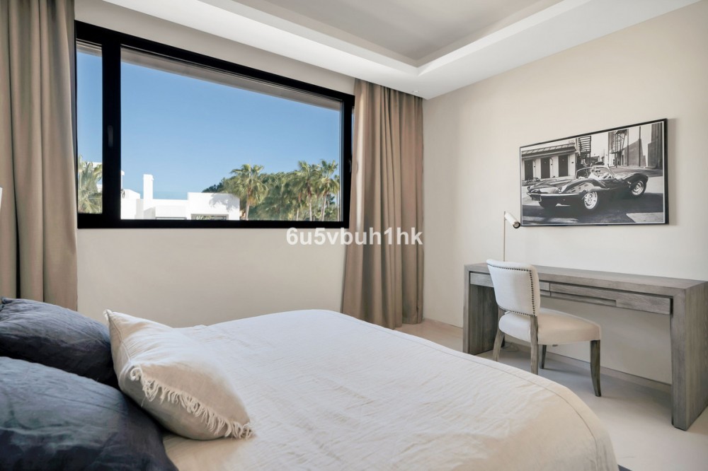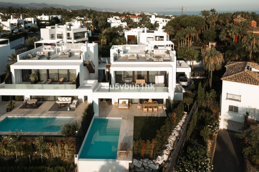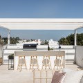 • Altos de Puente Romano is een goed onderhouden, privé en rustige wijk met 24-uursbeveiliging. Het strand van de Golden Mile en de beste restaurants van Puente Romano liggen op slechts een paar minuten loopafstand. Deze wijk ligt bovendien zeer dicht bij het centrum van Marbella en Puerto Banus. Deze villa is voorzien van de meest innovatieve technologie. U kunt de verlichting, muziek, airconditioning en beveiliging bedienen via wifi. De villa heeft 7 slaapkamers met eigen badkamer, een fitnessruimte, een muziekkamer en een tv-kamer in het souterrain, een ruime woonkamer met grote ramen voorzien van elektrische gordijnen. De villa baadt in natuurlijk licht. De hoogwaardige keuken is uitgerust met op maat gemaakte terrazzo werkbladen, de nieuwste apparatuur en kranen van het bekende Zweedse merk Tapwell. Deze villa beschikt over twee verwarmde zwembaden, een verwarmingssysteem in de kelder en een Tesla-oplader. Er is een prachtig zwembad in de tuin en een mooie jacuzzi voor 10 personen op het dakterras met solarium, een buitenkeuken, barbecue, koelkast en vriezer, en natuurlijk een Sonos-muzieksysteem op het solarium, in de hoofdslaapkamer en op het terras op de begane grond. Het panoramische uitzicht vanaf het dakterras is spectaculair en de zonsondergang adembenemend. Comfortabel wonen met maximale veiligheid.