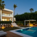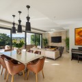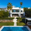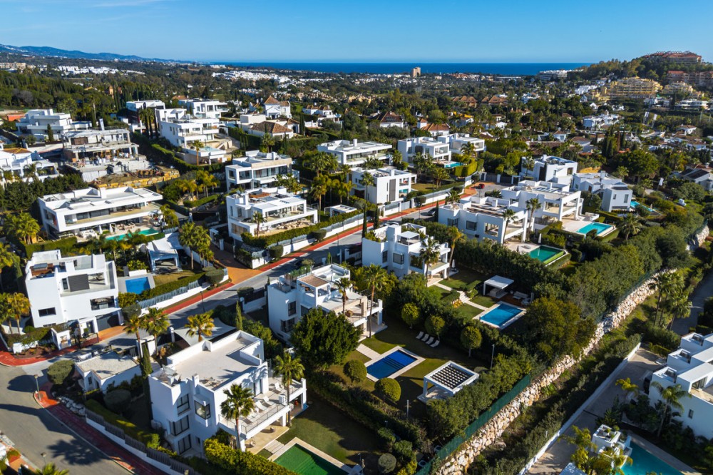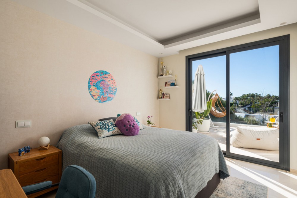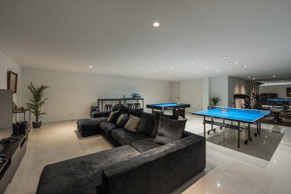 - Deze moderne villa is gelegen in de prestigieuze, volledig beveiligde woonwijk Los Olivos met 24/7 bewaking. De villa staat op het grootste perceel van de wijk en biedt ongeëvenaarde privacy, ruimte en een toplocatie. Het royale perceel van 1.351 m² biedt 473 m² aan verfijnde woonruimte, ontworpen voor een elegante, moderne mediterrane levensstijl. De villa biedt toegang tot prachtig aangelegde tuinen, meerdere terrassen, een privézwembad en een panoramisch dakterras, waardoor een naadloze overgang tussen binnen en buiten ontstaat met de hele dag zonlicht en spectaculaire zonsondergangen. Een elegante, bioklimatische pergola met een volledig uitgeruste buitenkeuken maakt dineren en entertainen in de buitenlucht een fluitje van een cent. De belangrijkste woonruimtes hebben een lichte, open indeling en integreren een strakke designkeuken, een eetgedeelte en een ruime woonkamer met kamerhoge ramen die het interieur overspoelen met natuurlijk licht en de verbinding met de terrassen en de tuin versterken. Een privélift die alle verdiepingen verbindt, verhoogt de toegankelijkheid en het comfort in het hele huis. De woning biedt zes royale slaapkamers, waaronder één die momenteel is ingericht als kantoor, wat flexibiliteit biedt voor gezinsleven, gasten of thuiswerken. Hedendaagse materialen, strakke architectonische lijnen en neutrale afwerkingen creëren een instapklare woning met een sterke aantrekkingskracht voor zowel levensstijl als investering. De benedenverdieping is volledig gewijd aan ontspanning en functionaliteit en beschikt over een thuisbioscoop, een entertainmentruimte, een privéfitnessruimte en een volledig uitgeruste wasruimte. Deze villa combineert architectonische excellentie, ruime buitenruimtes en hoogwaardige voorzieningen en biedt een zeldzame kans voor een permanente woning of een luxe vakantiehuis in een van de meest gewilde gated communities van Marbella. Belangrijkste kenmerken: - Gelegen in het volledig beveiligde Los Olivos met 24/7 beveiliging. - Grootste kavel in het project: 1.351 m² - 473 m² woonruimte - Zes slaapkamers, inclusief een aparte kantoorruimte - Open woon-, eet- en designkeuken - Glazen wanden van vloer tot plafond voor overvloedig natuurlijk licht - Privélift die alle verdiepingen verbindt - Panoramisch dakterras met uitzicht op de zonsondergang - Aangelegde tuin met zwembad en terrassen - Bioklimatische pergola met buitenkeuken - Thuisbioscoop, fitnessruimte en entertainmentruimte op de benedenverdieping - Kant-en-klaar, eigentijds ontwerp, ideaal voor permanent gebruik of als vakantiewoning.