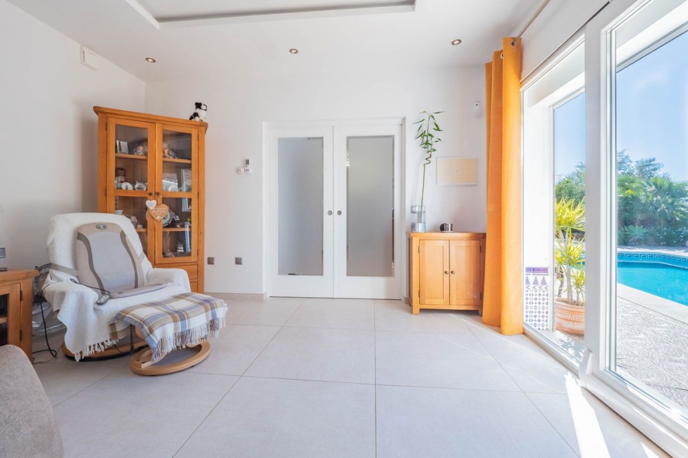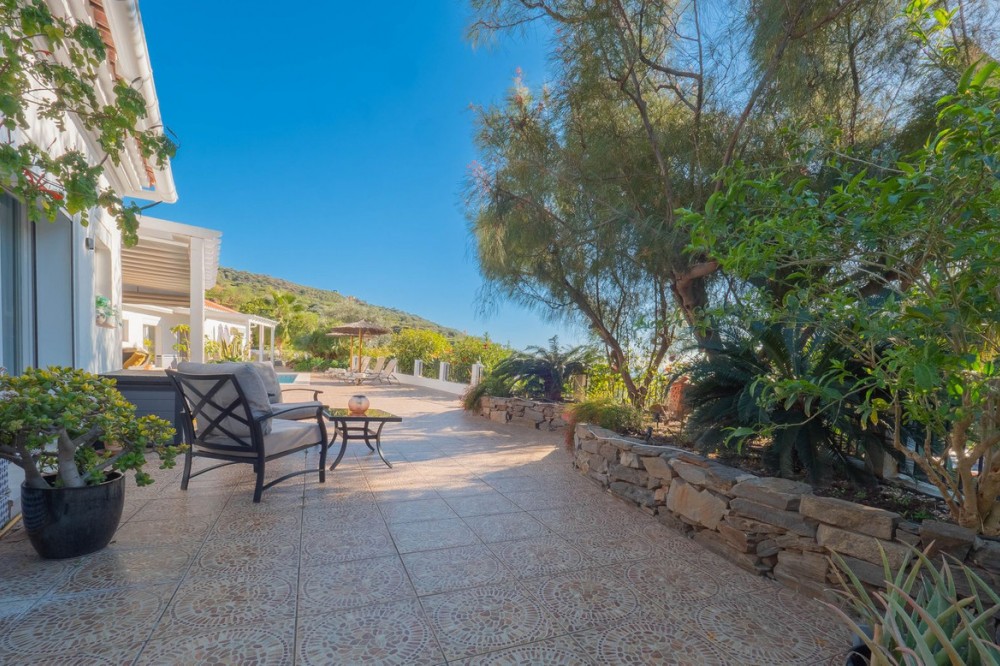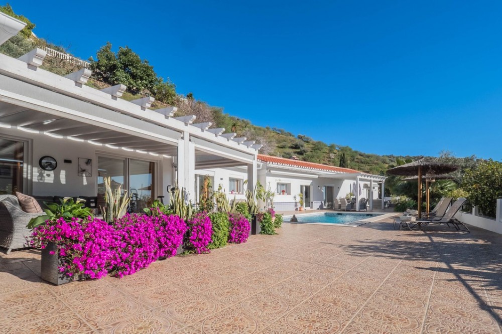 - Stunning 5-Bedroom Villa with Sea & Mountain Views located in the campo of Vélez Malaga. This beautifully presented five-bedroom, two-bathroom detached villa offers open views of both the mountains and the sea. Ideally located in the peaceful countryside 5 minutes north of Vélez Malaga the property is just a 12-minute drive from the beaches of Torre del Mar and nearby commercial amenities. The villa comes with AFO license and the property has been upgraded to a high standard and features a spacious and thoughtfully designed layout. The accommodation includes an inviting entrance hall with a separate utility room, an exceptionally large living room with a wood burner and direct access to the terraces, and two well-proportioned bedrooms and a single all with fitted wardrobes. The modern fitted kitchen is a standout feature, complete with a central island and high-quality Bosch appliances, flowing into a separate dining area with patio doors. A further hallway leads to an additional family bathroom, a luxurious second bathroom, a double bedroom with terrace access, and a fifth bedroom currently used as a dressing room, offering an abundance of fitted wardrobes. Externally, the property boasts a large driveway, beautifully maintained grounds, and a variety of fruit trees including orange, lemon, mango, and olive trees. Multiple terraces provide ideal spaces for outdoor living, alongside a saltwater swimming pool, two pergolas (one with retractable blinds and the other fully covered), a BBQ area, storage rooms, and a 28,000-litre water deposit. Additional features include manual entrance gates, and a full alarm system with security cameras. Further benefits include 8 solar panels generating 4.8 kW, supported by two 5 kW storage batteries, central heating via a heat exchange boiler, partial underfloor heating (in the kitchen, dining room, living room and hallway), air conditioning throughout, quality double glazing with shutters fitted wardrobes, and a wood-burning stove. Conveniently located, the Villa is a short drive from Vélez-Málaga and just 45 minutes from Málaga Airport. A truly exceptional home that must be seen to fully appreciate the quality, space, and lifestyle on offer. Detached Villa, Felez Malaga, Costa del Sol East. 5 Bedrooms, 2 Bathrooms, Built 199 m², Garden/Plot 5161 m². Orientation : South West. Condition : Excellent. Climate Control : Air Conditioning, Central Heating, U/F Heating. Views : Sea, Mountain, Country, Panoramic, Pool. Features : Covered Terrace, Fitted Wardrobes, Private Terrace, Storage Room, Utility Room, Ensuite Bathroom, Barbeque, Double Glazing. Furniture : Optional. Kitchen : Fully Fitted. Garden : Private. Security : Alarm System. Detached Villa, Velez Malaga, Costa del Sol East. 5 Bedrooms, 2 Bathrooms, Built 199 m², Garden/Plot 5161 m².