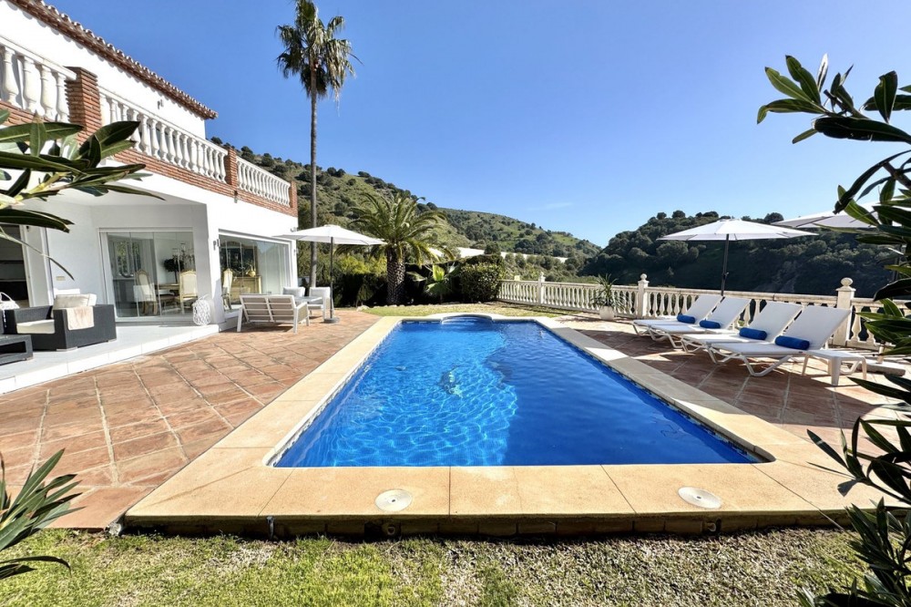 - Nieuwe aanbieding - Prachtige villa met 5 slaapkamers en 3,5 badkamers op een verhoogd perceel in Upper Calahonda, met een schitterend panoramisch uitzicht over de met bomen omzoomde heuvels tot aan de zee. Deze prachtige woning te koop in Calahonda, Mijas Costa, is centraal gelegen aan de Costa del Sol, op loopafstand van diverse populaire restaurants en op slechts ongeveer 4 minuten rijden (met de auto of taxi) van populaire stranden en restaurants aan het strand. VILLA Aan de voorzijde van de villa bevindt zich een grote parkeerplaats met een elektrische poort en een voetgangerspoort met een trap naar de veranda. BEGANE GROND: Grote houten dubbele deuren geven toegang tot de entreehal met een deur naar het toilet en een open verbinding naar de lichte en ruime open woonruimte. Deze omvat een zithoek met sfeervolle open haard, een enorme open luxe keuken met eethoek, en directe toegang tot het ontspannende overdekte terras en het zonovergoten terras bij het zwembad en de tuin. Ideaal om van de zon te genieten of gasten te ontvangen, met een prachtig panoramisch uitzicht op de zee en de met bomen omzoomde heuvels. Er is tevens een aparte bijkeuken voor de wasmachine en droger, en een aantrekkelijke trap naar zowel de bovenverdieping als de overloop. BOVENVERDIEPING: U beschikt over een ruime overloop met een groot raam en deuren naar 3 tweepersoonsslaapkamers en een tweede luxe badkamer met douche. De hoofdslaapkamer heeft een eigen inloopkast en een luxe badkamer met douche. Alle drie de tweepersoonsslaapkamers op de bovenverdieping hebben inbouwkasten en openslaande deuren naar het grote terras op het zuiden. Ook vanaf de slaapkamers en het terras op de bovenverdieping heeft u een panoramisch uitzicht op de groene heuvels en de zee. BEGANE GROND (half souterrain): Vanuit de woonkamer loopt u via een trap naar beneden naar een grote ontvangsthal, nog twee tweepersoonsslaapkamers en een derde doucheruimte, die allemaal profiteren van natuurlijk licht door de lichtkoepel. De villa is tevens voorzien van airconditioning en elektrische/handmatige rolluiken. TUIN & ZWEMBAD: Ruime tuin met gazon, berging en pompkamer voor het zwembad. Daarnaast een terras bij het zwembad en een zwembad zelf, alles met een panoramisch uitzicht op de open zee en de groene heuvels. LOCATIE Gelegen in Upper Calahonda, op loopafstand van een aantal populaire lokale restaurants en op slechts ongeveer 4 minuten rijden (met de auto of taxi) van populaire stranden en restaurants aan het strand. Deze accommodatie biedt tevens gemakkelijke toegang tot beide snelwegen langs de kust, waardoor de reistijd naar de meeste plaatsen en de luchthaven van Malaga kort is. Het populaire stranddorp "La Cala de Mijas" ligt op slechts ongeveer 8 minuten rijden en de ongelooflijk mooie oude binnenstad van Marbella met zijn met palmbomen omzoomde boulevard ligt op slechts ongeveer 15 minuten rijden. De luchthaven van Malaga ligt op circa 30 minuten rijden. DE LEVERANCIER LAAT ONS HET VOLGENDE WETEN: De IBI (gemeentebelasting) bedraagt ongeveer... € 901 per jaar. De afvalheffing (BASURA) bedraagt ongeveer € 142 per jaar. De servicekosten bedragen circa € 37 per maand. We zijn momenteel bezig met het maken van een video-rondleiding door de woning, maar als u actief op zoek bent naar een villa met 3-5 slaapkamers in het centrum van de Costa del Sol, wacht dan niet langer en neem nu contact met ons op om deze prachtige woning met schitterend uitzicht te reserveren of te bezichtigen.