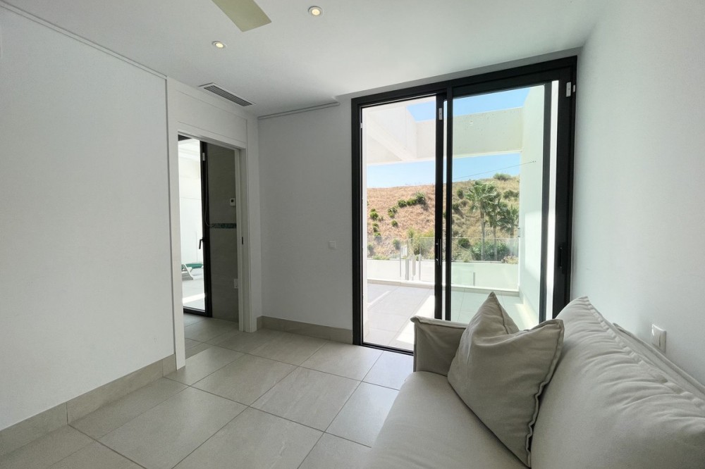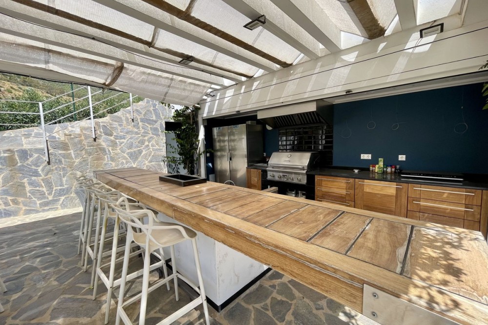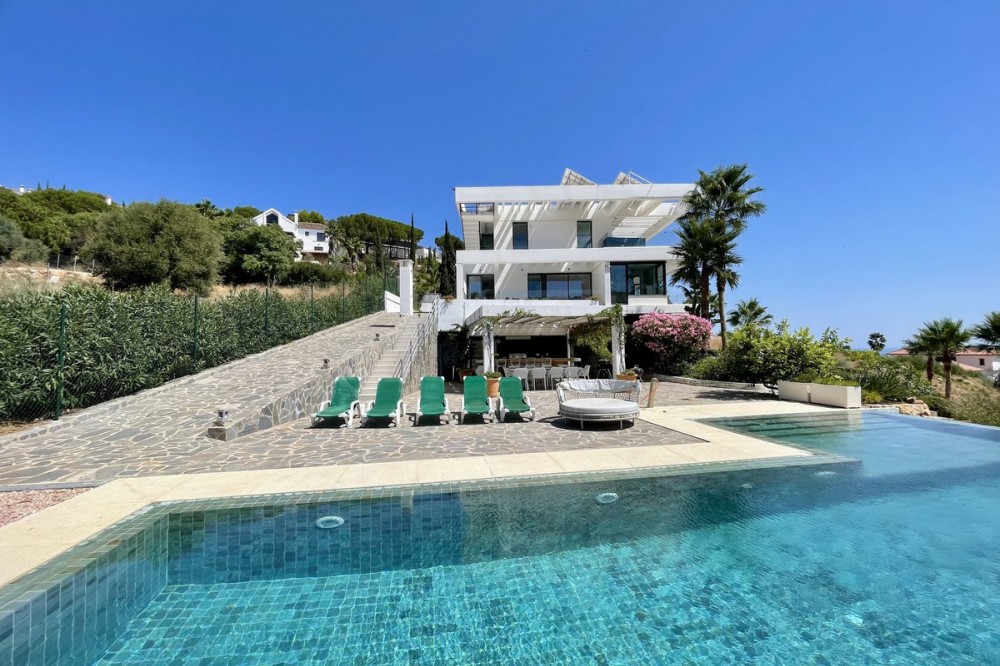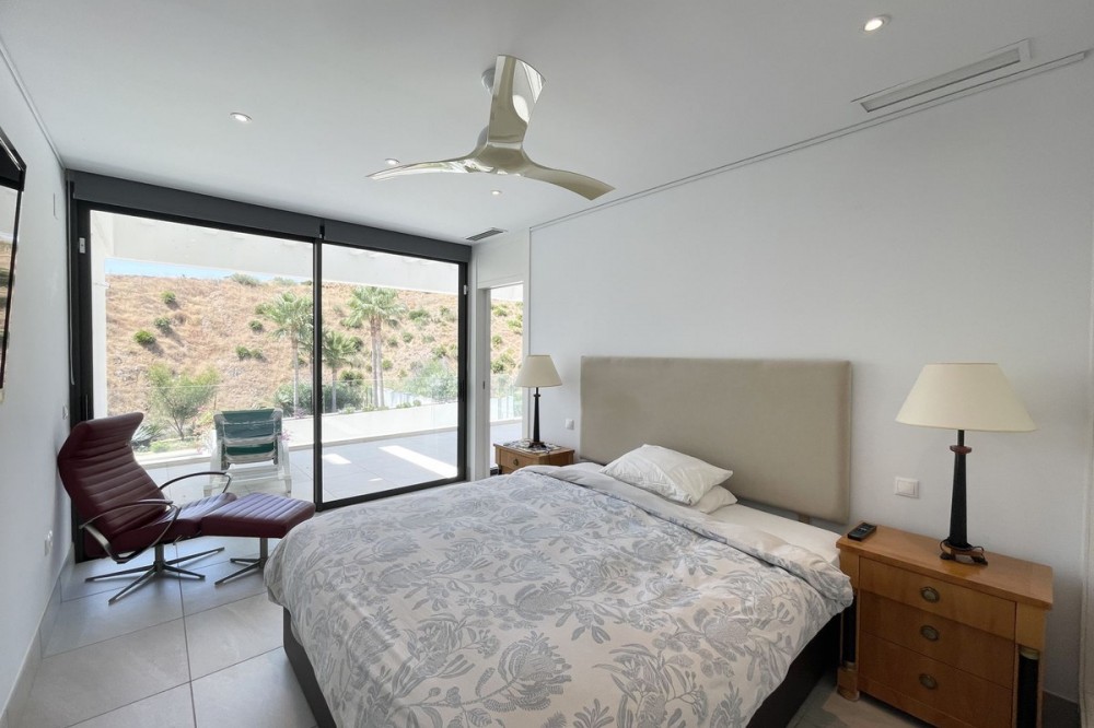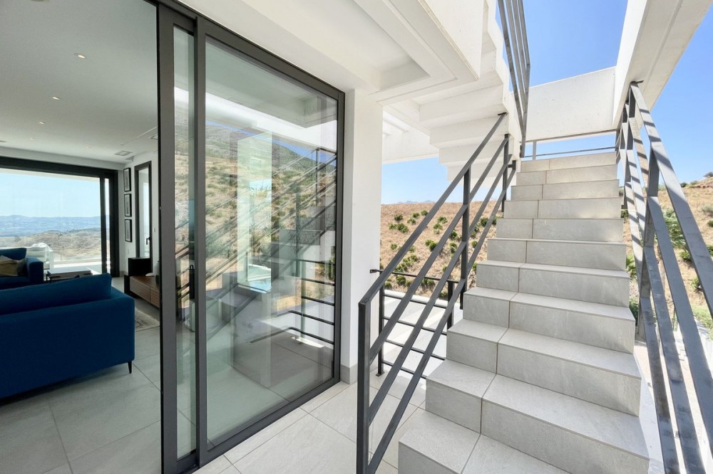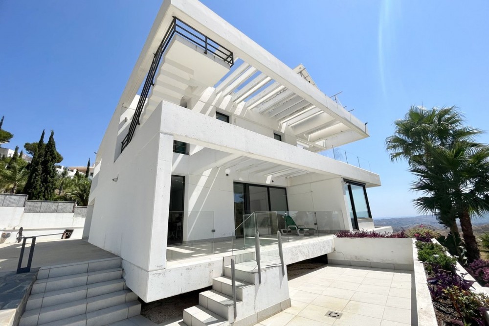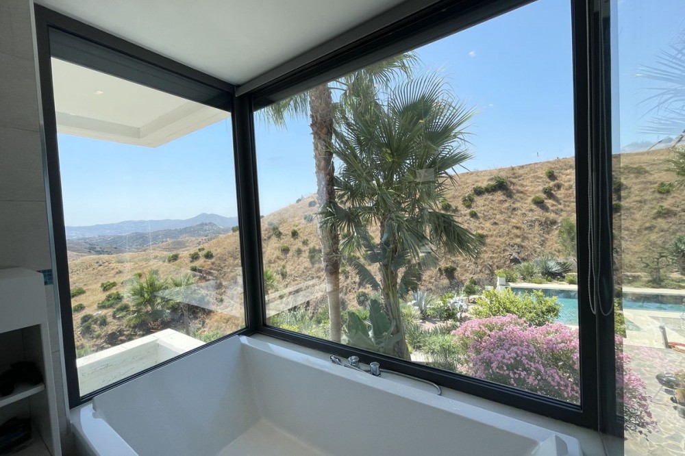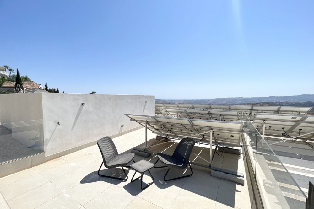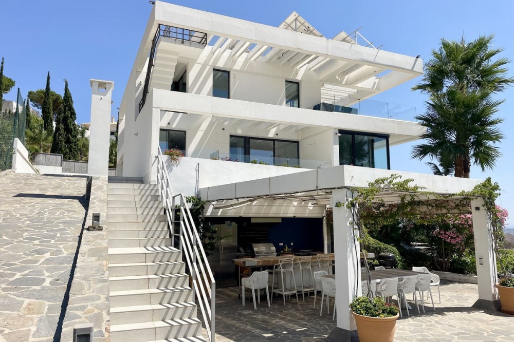 - Vrijstaande villa in het prestigieuze Valtocado, Mijas – met panoramisch uitzicht op de bergen en de Middellandse Zee. Ontdek deze unieke villa in de zeer gewilde woonwijk Valtocado – op slechts enkele minuten van het charmante, witgekalkte dorpje Mijas Pueblo en de beroemde golfbanen van Alhaurín el Grande. Dit is een woning die elegantie, comfort en een uitzonderlijke levensstijl perfect combineert. Gelegen op een ruim perceel van 1.718 m², verwelkomt de villa u met een gevoel van harmonie en exclusiviteit. Een weelderige Japanse tuin met een serene vijver biedt volledige privacy en een vredig toevluchtsoord. Dankzij de bevoorrechte ligging op het zuidwesten geniet de woning van spectaculaire zonsondergangen en adembenemende uitzichten op zowel de bergen als de Middellandse Zee. De buitenruimte is ontworpen voor zowel ontspanning als entertainment en beschikt over een verfrissend zwembad, ruime terrassen, een pergola, een volledig uitgeruste buitenkeuken met barbecue en een gezellige loungehoek. Een charmante wijnkelder maakt de perfecte finishing touch voor onvergetelijke avonden met familie en vrienden. Op de begane grond vindt u 4 ruime slaapkamers, die allemaal een prachtig uitzicht bieden op het omringende landschap. Drie van de slaapkamers hebben directe toegang tot het terras en er zijn 3 elegante badkamers met vloerverwarming, waarvan er één gedeeld wordt door twee slaapkamers. Op deze verdieping bevindt zich tevens een praktische bijkeuken met wasfaciliteiten en toegang tot de parkeerplaats, evenals een handige lift naar de bovenverdieping. De bovenste verdieping is het hart van de villa, ontworpen om optimaal te profiteren van het licht en het panoramische uitzicht. Hier wordt u verwelkomd door een indrukwekkende woonkamer met hoge plafonds en een overvloed aan natuurlijk licht, een moderne open keuken die naadloos overgaat in de eetkamer, en een groot terras waar u kunt genieten van onvergetelijke zonsondergangen. Op deze verdieping bevindt zich tevens een gastenbadkamer en een trap naar het dakterras, waar de zonnepanelen zijn geplaatst. De oprit biedt een overdekte parkeerplaats voor twee auto's, terwijl een elektrische poort zowel de veiligheid als een statige entree tot het privéterrein garandeert. Gebouwd met hoogwaardige materialen en met oog voor detail, biedt de villa zowel stijl als comfort. Het is de perfecte keuze, of u nu op zoek bent naar een permanente woning of een luxe vakantiehuis. Een werkelijk exclusief huis in een rustige en natuurlijke omgeving – op korte afstand van het dorpsleven, golfbanen, de bergen en de kust. Neem vandaag nog contact met ons op voor meer informatie of om een privébezichtiging te regelen!