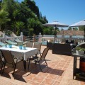 - A large villa in a quiet cul de sac in the Urbanisation of Campo Mijas with a large walled and gated garden with ample parking space for 3 or 4 cars . The property is entered via a gated entrance way to the large parking area with easy access to the house. On the upper ground floor there is a pool, barbecue and a sun terrace leading to the entrance hallway, a large open plan living/dining room, second lounge with a fireplace, master bedroom with large shower room, second bedroom with ensuite, large kitchen with separate office/dining area with access to another large sun terrace. The living room also has direct access to themain covered and open terrace, barbecue , bar and pool with open panoramic south west views over the valley . The lower floor is reached via a staircase and has two further bedrooms with access to the lower terrace ,a conservatory, a large shower room and further bedroom with ensuite shower room which has its own private terrace adjacent to the main pedestration entrance . There are ample landscaped gardens for easy maintenance and behind the house there is a large wooden chalet currently used for storage. The property is in a great location and is within easy access to all the amenities of El Coto. There are open panoramic views from the front terraces and pool area, the house is fully air conditioned and will be sold part furnished. The property has an extra bonus of an elevator . solar panels and is suitable for the disabled and eldery as well as a great family or holiday home. Detached Villa, Campo Mijas, Costa del Sol. 5 Bedrooms, 4 Bathrooms, Built 257 m², Terrace 200 m², Garden/Plot 975 m². Setting : Suburban, Close To Shops, Close To Schools. Orientation : South. Condition : Excellent, Recently Renovated. Pool : Private. Climate Control : Air Conditioning, Hot A/C, Cold A/C, Fireplace. Views : Panoramic, Garden, Pool, Courtyard. Features : Covered Terrace, Lift, Near Transport, WiFi, Storage Room, Utility Room, Ensuite Bathroom, Access for people with reduced mobility, Bar, Double Glazing. Furniture : Part Furnished, Optional. Kitchen : Fully Fitted. Garden : Private. Security : Gated Complex. Parking : Open, More Than One, Private. Utilities : Electricity, Drinkable Water, Telephone. Category : Resale.