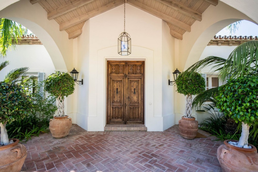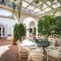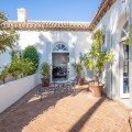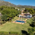 - Deze uitzonderlijke mediterrane villa, gelegen in de prestigieuze wijk Altos Reales, biedt een ongeëvenaarde combinatie van elegantie, comfort en privacy. Het pand staat op een ruim perceel van bijna 4.000 m² en is omgeven door groen, waardoor een rustige oase met adembenemende uitzichten ontstaat. De villa is omgeven door een zorgvuldig aangelegde tuin die de sfeer versterkt, compleet met een privézwembad dat het hele jaar door gebruikt kan worden. Ruime terrassen nodigen uit tot dineren en ontspannen in de buitenlucht, waardoor binnen- en buitenleven naadloos in elkaar overvloeien. In het hart van het pand ligt een betoverende binnenplaats, versierd met charmante decoraties en een fontein, die bijdraagt aan de tijdloze aantrekkingskracht van de villa. Een privéoprit leidt naar de woning, waar het klassieke interieur een eerbetoon is aan traditioneel Mediterraans design. Binnen versterken de hoge plafonds met opvallende houten balken het gevoel van grandeur, terwijl de naadloze overgang tussen de woon-, eet- en keukenruimte een uitnodigende sfeer creëert. De keuken is ruim, zeer functioneel en praktisch voor het dagelijks leven. Met vijf luxueuze slaapkamers biedt de villa een uitzonderlijk comfortniveau, met de master suite als pronkstuk. Elk detail van dit huis weerspiegelt een verfijnde levensstijl, waardoor het een ware belichaming is van mediterrane luxe op een van de meest gewilde locaties van Marbella.