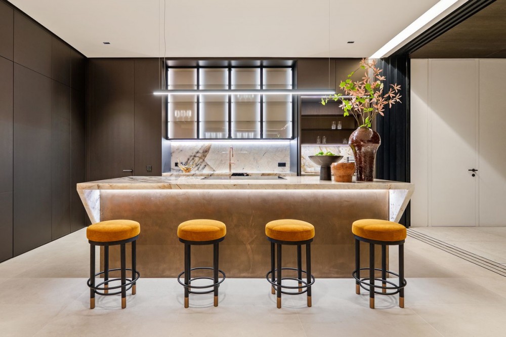 - Deze residentie, gelegen op de top van Herrojo Alto en met een adembenemend panoramisch uitzicht, is een waar architectonisch meesterwerk. De reis begint langs de pittoreske, met bomen omzoomde wegen van de exclusieve, afgesloten woonwijk El Herrojo Alto, die leiden naar de majestueuze ingang van dit bijzondere huis. Een ruime entree verwelkomt u in een modern pand, verfraaid met natuurlijke materialen. Binnen stroomt het natuurlijke licht de hal binnen via grote ramen van vloer tot plafond die een spectaculair uitzicht bieden. De belangrijkste woonruimte beschikt over een elegante zithoek met open haard, die op stijlvolle wijze de ruime eetkamer en de moderne keuken scheidt. Een aangrenzende buitenkeuken versterkt de culinaire ervaring – ideaal om gasten te ontvangen. Op deze verdieping bevinden zich ook twee gastenslaapkamers, elk met een eigen en-suite badkamer. Op de bovenverdieping vindt u nog drie slaapkamers met eigen badkamer, waaronder een magnifieke master suite van meer dan 70 m². De master suite beschikt over een inloopkast, een luxe badkamer en een privéterras met jacuzzi en uitzicht op het prachtige landschap. De benedenverdieping biedt bijna 800 m² aan luxe ruimte, ontworpen om optimaal te profiteren van natuurlijk licht en uitzicht door middel van grote ramen. Hier vindt u diverse lounges om te ontspannen of gasten te ontvangen, een speelkamer, een bioscoopzaal, een volledig uitgeruste fitnessruimte en een binnenspa met zwembad en jacuzzi. Andere kenmerken zijn onder meer een privékantoor, een garage voor zes auto's en drie extra slaapkamers met eigen badkamer, waarvan één met een aparte ingang en keuken, ideaal voor personeel of gasten.