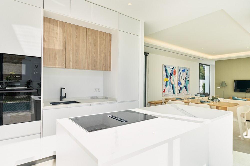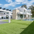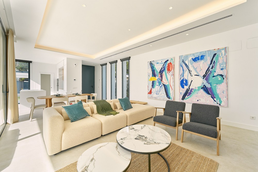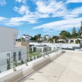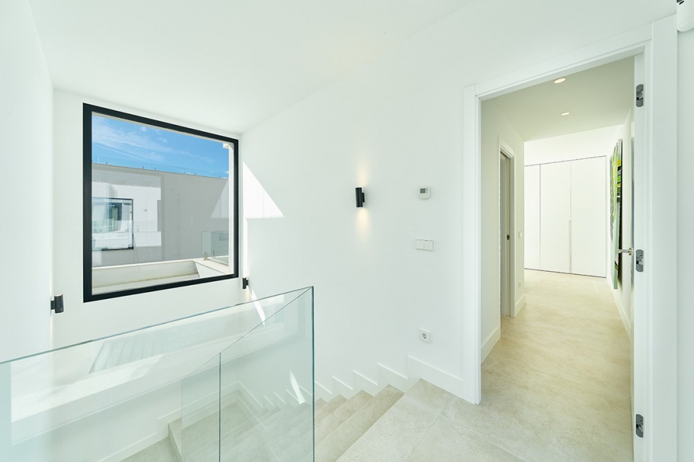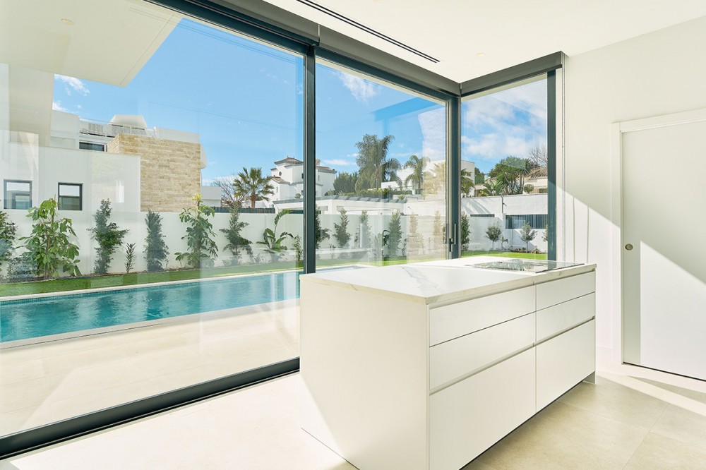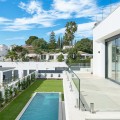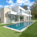 - Deze twee eigentijdse, naast elkaar gelegen villa's bevinden zich in de gevestigde woonwijk Monte Biarritz en bieden een moderne mediterrane woonervaring in een rustige, maar toch uitstekend bereikbare omgeving tussen Marbella en Estepona. De woningen zijn ontworpen met strakke architectonische lijnen en grote glaspartijen en combineren een eigentijds design, royale buitenruimtes en een functionele indeling, ideaal voor zowel permanent wonen als vakantiegebruik. Elke villa is verdeeld over meerdere verdiepingen en biedt een zorgvuldig doordachte indeling die optimaal gebruikmaakt van natuurlijk licht en een naadloze overgang tussen binnen en buiten. De woonverdieping beschikt over een lichte, open woon- en eetkamer die verbonden is met een moderne keuken, met grote glazen schuifdeuren die direct toegang bieden tot de terrassen, de tuin en het privézwembad. Deze buitenruimtes zijn ontworpen om het hele jaar door van te genieten, met ruimte om te dineren, te ontspannen en gasten te ontvangen, met uitzicht op de fraai aangelegde tuin. De begane grond is volledig gewijd aan de slaapvertrekken, waaronder een ruime hoofdslaapkamer met en-suite badkamer en privéterras, evenals extra gastenslaapkamers die zijn ontworpen voor comfort en privacy. Daarboven biedt een royaal dakterras een veelzijdige buitenruimte, ideaal om te zonnebaden, te entertainen of een ontspannen lounge te creëren met een vrij uitzicht op de omliggende woonwijk. De benedenverdieping biedt extra flexibiliteit aan de woning, met extra ruimtes die gebruikt kunnen worden als fitnessruimte, speelkamer, wijnkelder of opslagruimte, naast technische en servicefaciliteiten. Deze verdieping vergroot de praktische bruikbaarheid van het pand en biedt tegelijkertijd extra mogelijkheden voor een aangename levensstijl. Elke villa staat op een eigen perceel met aangelegde tuinen, een zwembad en overdekte parkeerplaatsen. De architectuur combineert eigentijdse witte volumes met elementen van natuursteen, waardoor een moderne maar tijdloze esthetiek ontstaat die naadloos aansluit op de omliggende buurt. Monte Biarritz is een gevestigde woonwijk die bekendstaat om zijn gunstige ligging nabij golfbanen, internationale scholen, stranden en alle dagelijkse voorzieningen. Puerto Banús, San Pedro en Estepona liggen allemaal op korte rijafstand, waardoor deze villa's een uitstekende optie zijn voor kopers die op zoek zijn naar modern design, privacy en gemakkelijke toegang tot het beste van de Costa del Sol.