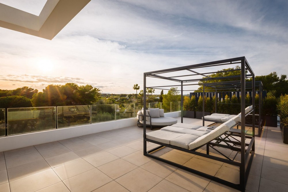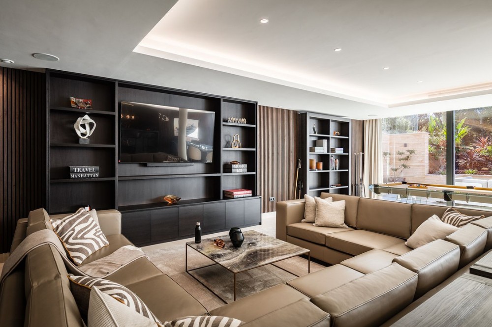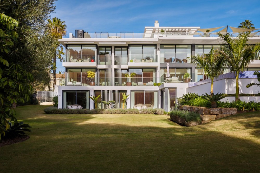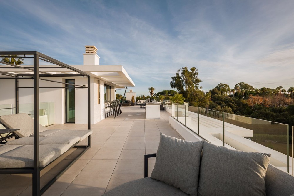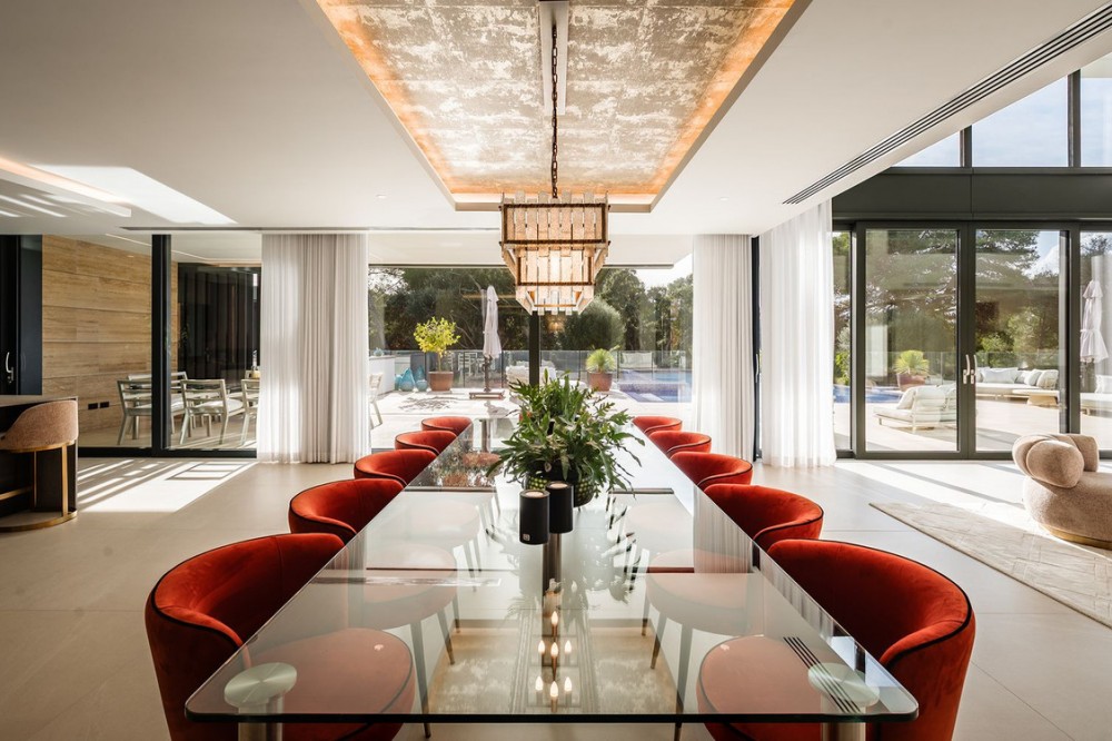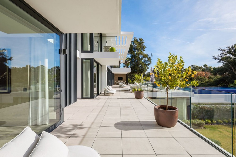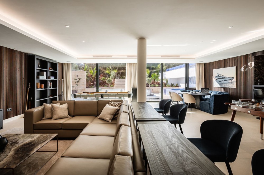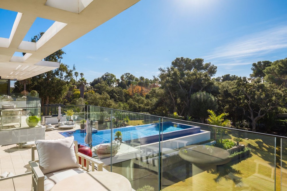 - Schitterende villa in Sotogrande! Prachtige, moderne villa in het hart van de prestigieuze wijk Kings and Queens in Sotogrande, op slechts een steenworp afstand van het strand, de jachthaven en golfbanen van wereldklasse. De woning staat op een ruim, fraai aangelegd perceel en combineert strakke, moderne architectuur met lichte, open ruimtes, ontworpen voor een ontspannen mediterrane levensstijl. De dubbele plafondhoogte, de naadloze overgang tussen binnen en buiten en de prachtige keuken maken het ideaal voor zowel het dagelijks leven als het ontvangen van gasten. Met zeven slaapkamers met eigen badkamer, dakterrassen, wellnessruimtes en een sereen overloopzwembad biedt het privacy, comfort en moeiteloze luxe op een van de meest gewilde locaties in Sotogrande. De woning is doordacht ontworpen voor zowel dagelijks comfort als sociale bijeenkomsten en beschikt over meerdere binnen- en buitenruimtes. Het hart van de woning wordt gevormd door een volledig uitgeruste Gaggenau-keuken met kookeiland, aangevuld met een aparte voorbereidingskeuken en een aangrenzende buitenruimte met barbecue – perfect om gasten te ontvangen. De zeven slaapkamers hebben elk een eigen badkamer, wat privacy en luxe garandeert voor bewoners en gasten. Extra voorzieningen verhogen de aantrekkelijkheid van de woning, waaronder een aparte wellnessruimte met sauna en stoombad, een speelkamer en een privélift die zowel gemak als toegankelijkheid biedt. Het solarium op het dak biedt een prachtige omgeving om te ontspannen, compleet met barbecue, douche en een openluchtlounge met panoramisch uitzicht – ideaal voor zonnige middagen of gezellige avonden. Buiten wordt een elegant overloopzwembad omgeven door weelderige, volgroeide beplanting, wat een serene, resortachtige sfeer creëert. De grote privégarage biedt veilige parkeergelegenheid voor meerdere voertuigen, wat de praktische luxe van de woning nog eens benadrukt.
