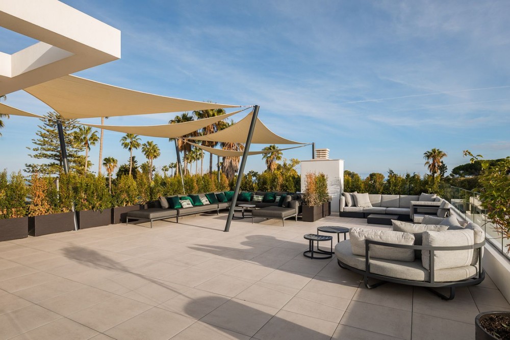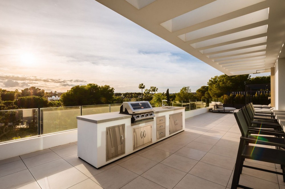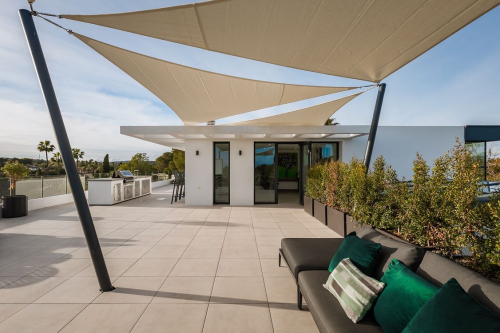 Voorzieningen: overdekt terras, lift, inbouwkasten, privéterras, solarium, satelliet-tv, wifi, fitnessruimte, speelkamer, gastenappartement, gastenverblijf, berging, bijkeuken, badkamer en suite, marmeren vloer, jacuzzi, bar, barbecue, dubbele beglazing, domotica, kelder, glasvezel