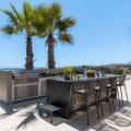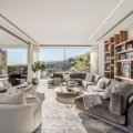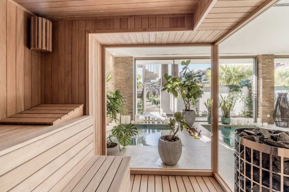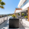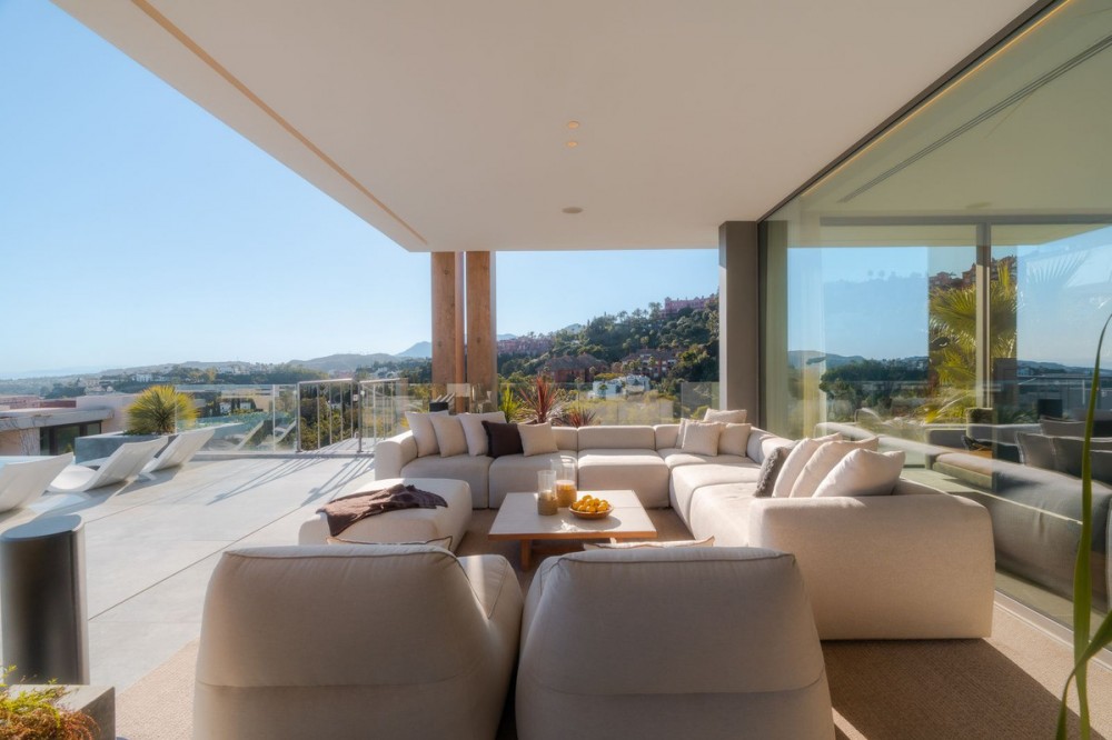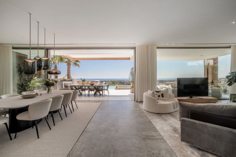 - Schitterende vrijstaande villa in La Quinta. Met een panoramisch uitzicht dat zich uitstrekt van de Middellandse Zee tot de Afrikaanse kust. Het eigentijdse ontwerp versterkt deze ervaring, met open interieurs die naadloos opgaan in de natuurlijke omgeving. Ramen van vloer tot plafond en ruime woonruimtes creëren een vloeiende overgang tussen binnen en buiten, waardoor de ruimte gevuld wordt met natuurlijk licht, frisse lucht en een ononderbroken uitzicht vanuit elke hoek. Deze villa beschikt over een privéspa met een verwarmd binnenzwembad, sauna, stoombad en een aparte massageruimte. Een volledig uitgeruste fitnessruimte met Eleiko-apparatuur stelt u in staat om actief te blijven zonder uw huis te verlaten, terwijl de ruime entertainmentkamer de ideale setting biedt voor filmavonden, spelletjes of gewoon om te ontspannen met familie en vrienden. De keuken is voorzien van hoogwaardige Gaggenau-apparaten en strakke kasten van Danespan, waarmee modern design en dagelijkse functionaliteit worden gecombineerd. Een aangrenzend thuiskantoor biedt een rustige plek om te werken of te studeren. Een uniek hoogtepunt van de villa is de openluchtbioscoop bij het zwembad, een uitzonderlijke plek om te ontspannen onder de sterrenhemel en een extra vleugje luxe toe te voegen aan uw avonden in de buitenlucht. Binnen vindt u zes royale slaapkamers, elk zorgvuldig ontworpen met hoogwaardige afwerkingen en een rustgevende sfeer. Of ze nu gebruikt worden als gastenkamers, familiekamers of privéwerkruimtes, elke slaapkamer biedt zijn eigen unieke charme en comfort. Verder zijn er zeven complete badkamers en drie gastentoiletten verspreid over het pand. De master suite is werkelijk uitzonderlijk. Deze suite is strategisch geplaatst om een adembenemend uitzicht op zee te bieden en beschikt over een op maat gemaakte inloopkast en een luxe en-suite badkamer met hoogwaardige armaturen en een serene, spa-achtige sfeer, waardoor een vredig toevluchtsoord in huis ontstaat.