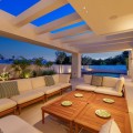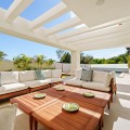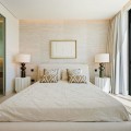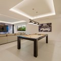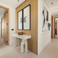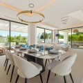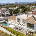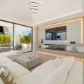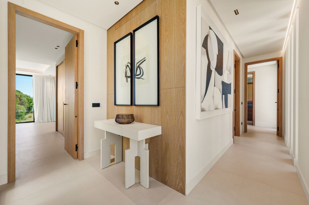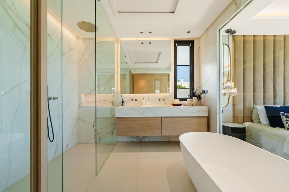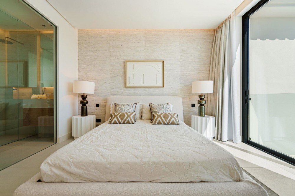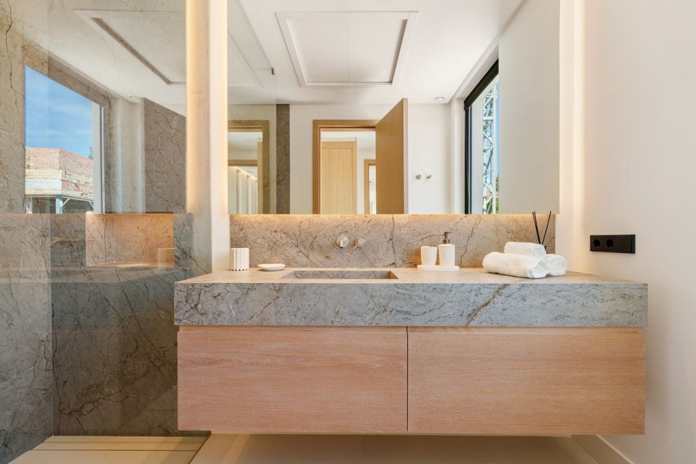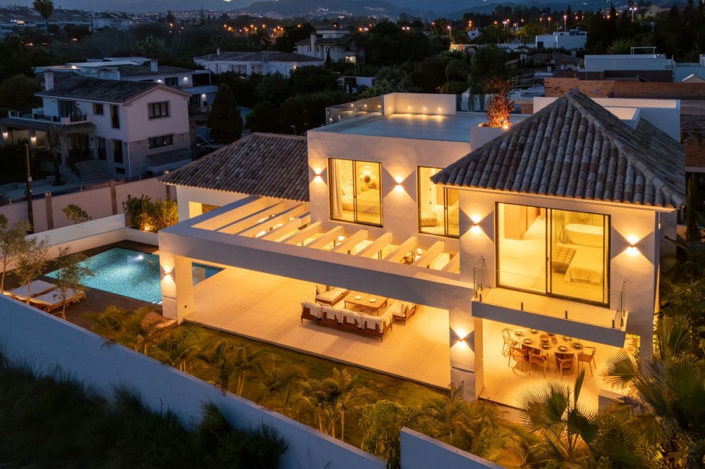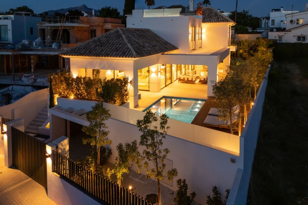 - Deze eigentijdse villa in de gewilde wijk San Pedro de Alcántara combineert strakke architectuur met luxe voorzieningen. Achter heldere witte muren en fraai aangelegde tuinen biedt het pand een privé-oase met een sprankelend zwembad, omgeven door een stijlvol houten terras en een ruim overdekt terras om te dineren en te ontspannen. Royale buitenruimtes, waaronder een solarium op het dak, creëren de perfecte setting voor ontspanning en gezelligheid. Binnen is het ontwerp licht en modern, met zachte neutrale tinten, elegante inbouwverlichting en kamerhoge ramen die de woning vullen met natuurlijk licht. De open woon- en eetkamer is voorzien van een opvallende, op maat gemaakte entertainmentwand en eigentijdse armaturen, en loopt naadloos over in de hypermoderne keuken. Hier vormt een warm houten kookeiland een prachtig contrast met strakke kasten en geïntegreerde apparatuur, terwijl een ruime eethoek uitnodigt tot gezellige maaltijden met vrienden en familie. De privévertrekken van de villa zetten de verfijnde esthetiek voort. De slaapkamers zijn sereen en luchtig, met kamerhoge glazen deuren die toegang geven tot terrassen, en en-suite badkamers die een spa-achtige elegantie uitstralen met zwevende wastafels, marmeren afwerkingen en vrijstaande badkuipen. De master suite imponeert met zijn luxueuze proporties en directe toegang tot een zonnig terras, waardoor een intieme oase van rust in huis ontstaat. Voor welzijn en ontspanning beschikt de benedenverdieping over een volledig uitgeruste fitnessruimte, compleet met een sauna en een glazen stoomcabine, en voldoende ruimte om te sporten en te relaxen. Een beveiligde garage en een stijlvolle entree bieden extra gemak en privacy in deze uitzonderlijke woning. Deze villa is ontworpen voor een eigentijds leven aan de kust en biedt een verfijnde stijl en alle moderne gemakken op een toplocatie.