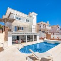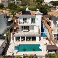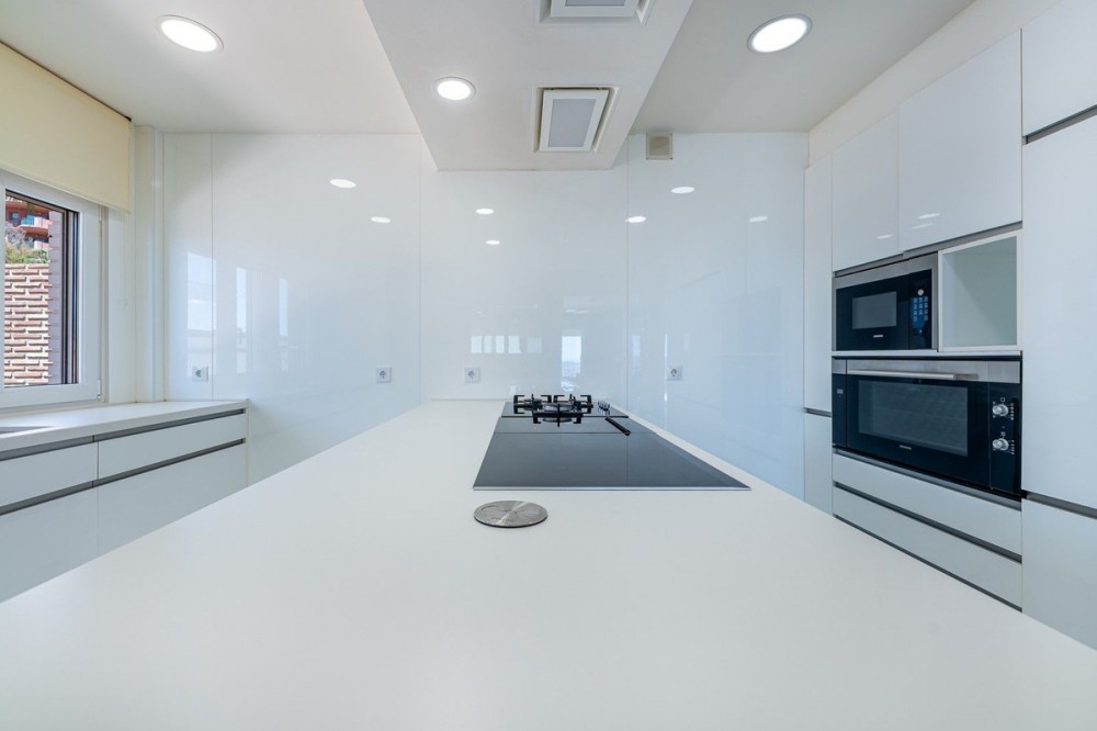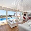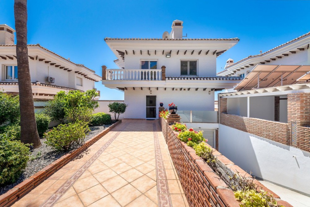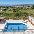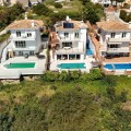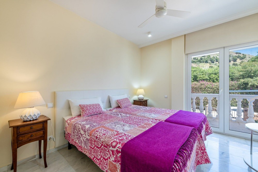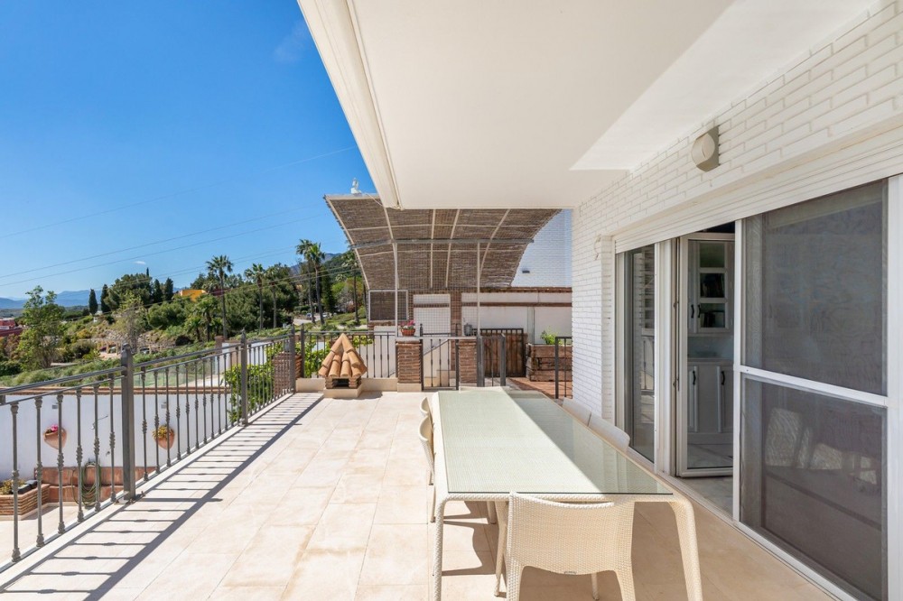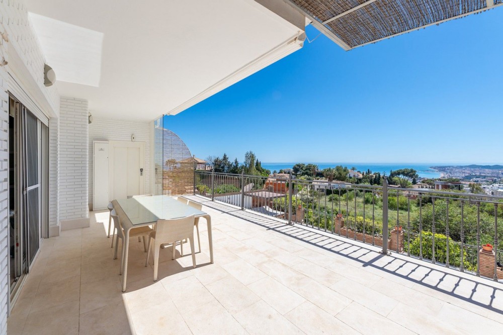 • Villa in La Capellanía | Panoramic Views and High-End Fixtures This property, with a floor area of 294 m², sits on a 565 m² plot in the upper part of the La Capellanía residential development in Benalmádena. Built in 2013 and maintained by its original owner, the property stands out for its south-west facing orientation, ensuring constant natural light and unobstructed views towards Fuengirola Bay, the Mediterranean and the African coast. Layout and Connectivity The property is arranged over three levels connected by an internal staircase and a low-maintenance private lift linking the living areas to the pool area. Ground Floor: Living-dining room with a fireplace and a modern kitchen. The space opens onto a 40 m² main terrace protected by high-end electric awnings. Upper Floor: Four bedrooms and three bathrooms. The master suite features a 15 m² private terrace with views of the horizon. Ground Floor (Leisure Level): Designed for independent use, it has direct access from the outside without passing through the main house. It houses a high-end kitchen with a wine cellar, a fifth bedroom with an en-suite bathroom and a social area equipped with a professional Basque-style barbecue. Infrastructure and Sustainability The plot is fully landscaped with a paved finish for efficient maintenance. The outdoor area includes a heated saltwater swimming pool (9.50 m x 4.50 m) and a Basque pelota court. The technical specifications are designed for efficiency and comfort: Energy: Installation of photovoltaic panels and solar thermal panels for hot water. Large-capacity rainwater tank. Climate control: Independent Airzone system per room and underfloor heating in all bathrooms. Enclosures: Motorised security shutters and fly screens throughout the property. Parking and Extension: Enclosed pergola with automatic gate for two vehicles. Original garage currently used as a gym, with the technical feasibility to cover the ramp and extend the entrance platform. Location and Amenities Located a short walk from the shopping area (supermarket, pharmacy, restaurants) and public transport stops. Technical Specifications Floor area: 294 m² built / 565 m² plot. Bedrooms: 5. Bathrooms: 5 full bathrooms and 1 toilet. Key features: Lift, solar panels, heated saltwater swimming pool, professional barbecue and automated security system. Available for private viewings by appointment.