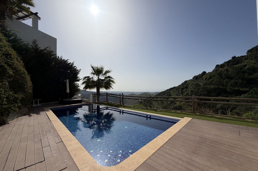 • Set within an exclusive gated community of high quality villas, this elegant four-bedroom independent home offers a rare combination of privacy, space, quality, and spectacular scenery. Nestled in a peaceful natural setting above the picturesque village of Benahavís, the property enjoys stunning views across the surrounding hills and out towards the Mediterranean Sea. Occupying a quiet position on a cul-de-sac, the villa is designed across four levels and is connected throughout by a private elevator, offering both comfort and practicality. The home has been finished to a high standard, with quality materials and a layout that has been carefully planned to create bright, generous living spaces throughout. The main living area is particularly impressive, with a spacious lounge and dining area that flows naturally into the kitchen, creating a sociable and welcoming heart of the home. Large windows and terrace doors allow natural light to pour in, while also making the most of the beautiful open views and desired indoor-outdoor lifestyle that defines living on the Costa del Sol. The villa offers four bedrooms in total, including three well-appointed en-suite bedrooms, providing excellent accommodation for both family living and visiting guests. Each room has been designed with comfort in mind, while the overall feel of the property is calm, elegant, and refined. One of the home’s standout features is its impressive lower ground level, which adds significant versatility to the layout and enhances the sense of space throughout the property. Whether used for additional living, entertainment, storage, or lifestyle needs, this floor gives the villa a flexibility that is increasingly sought after in luxury homes. Outside, the private swimming pool and terraces provide the perfect setting for relaxing, entertaining, and enjoying the villa’s tranquil surroundings. From morning coffee to sunset evenings, the outdoor spaces are designed to make the most of the stunning setting and Mediterranean climate. The property also benefits from private parking for two cars. Residents of Benahavís Hills Country Club enjoy the security and prestige of a gated development of luxury villas, along with access to excellent communal wellness facilities including an onsite gym, indoor pool and spa, adding to the appeal of this exceptional home. Combining a peaceful location, generous proportions, high-quality finishes, private pool, sea views, and access to superb community amenities, this is a wonderful opportunity to own a stylish villa in one of the most desirable residential enclaves above Benahavís.